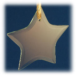 No minimum order! - 3-1/2" Diameter with bevel - Comes with blue velvet bag and gold stretch string for hanging More shapes are available: Information here: http://ipadlaserengraving.com/2743/laser-etched-glass-ornaments/